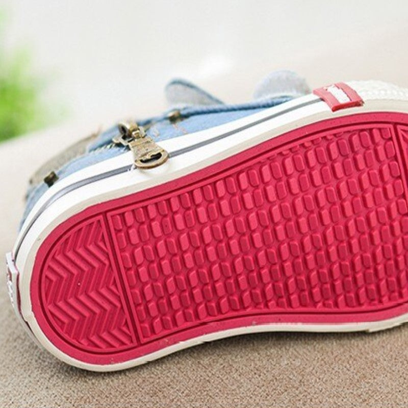 Tênis Infantil Jeans Cano Alto, a escolha perfeita para dar ao seu pequeno(a) um toque de estilo e conforto elevado em seus passos. Este tênis é o equilíbrio ideal entre moda e funcionalidade, perfeito para as aventuras diárias.